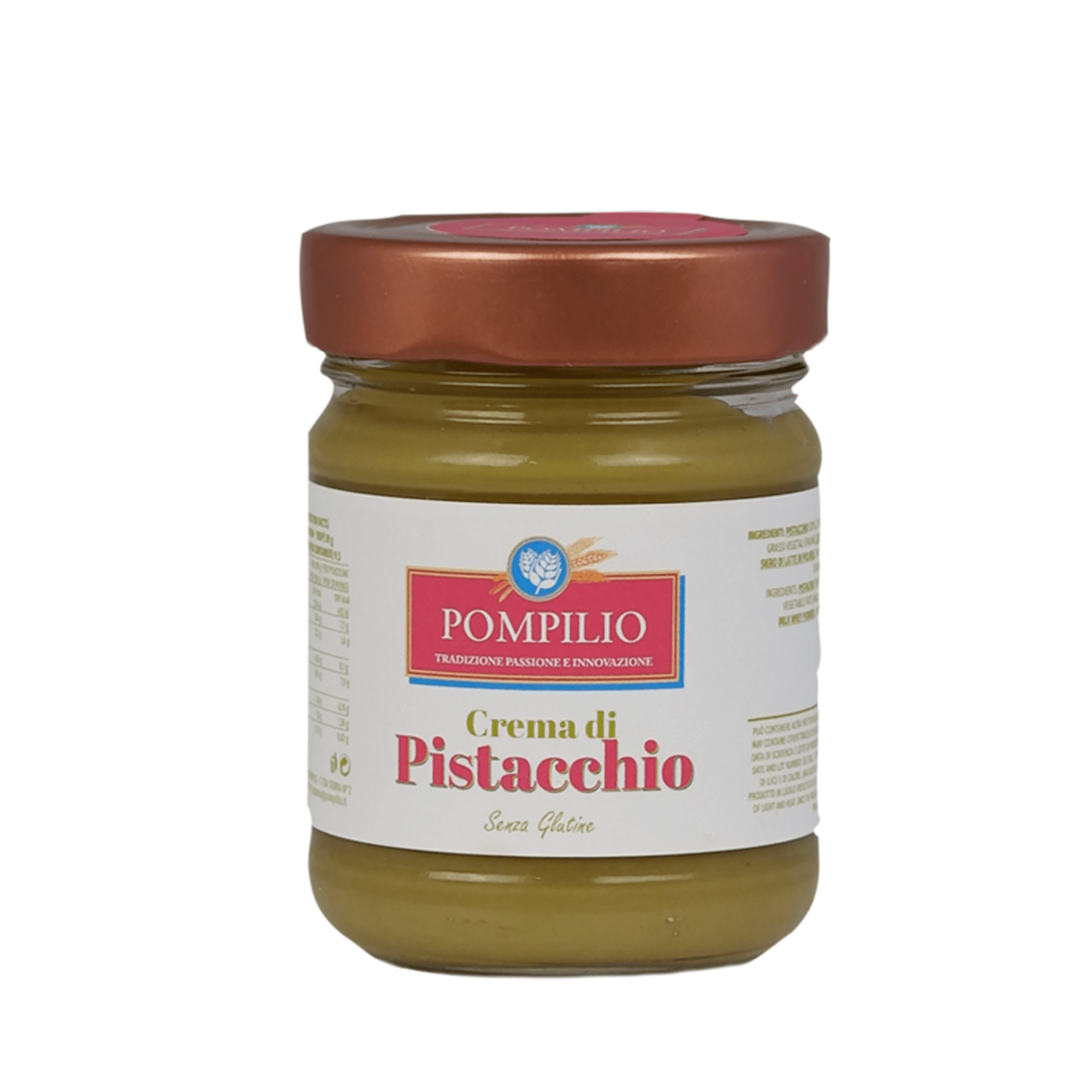 Ingredienti: farina di frumento, burro, zucchero, tuorli d’uova fresche di categoria A da galline allevate a terra, crema al pistacchio di Bronte (200g), cioccolato al pistacchio, lievito madre naturale (frumento), miele, malto, sale, bacche di vaniglia naturale del Madagascar.